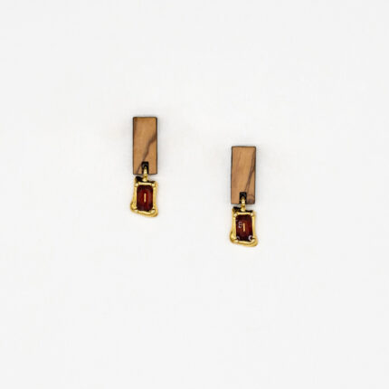 Χειροποίητα σκουλαρίκια & μενταγιόν από ελαιόξυλο σε σχήμα γεωμετρικής σύνθεσης. Συνδυάζονται με μεταλλικό στοιχείο σε χρυσό χρώμα και διάφανο σμάλτο σε Μπλέ, Πράσινο ή Κόκκινο χρώμα. Μια επιλόγη που θα προσθέσει chic στην εμφάνισή σας.