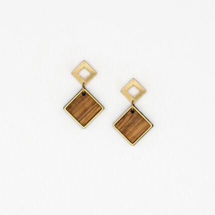 Χειροποίητα σκουλαρίκια από ελαιόξυλο σε σχήμα ρόμβου. Συνδυάζονται με ένα μεταλλικό στοιχείο από ανοξείδωτο ατσάλι σε χρυσό κι ασημί χρώμα. Για όσες επιλέγουν τα μεγάλα κοσμήματα για να δώσουν μια ενδιαφέρουσα άποψη στην εμφάνισή τους.