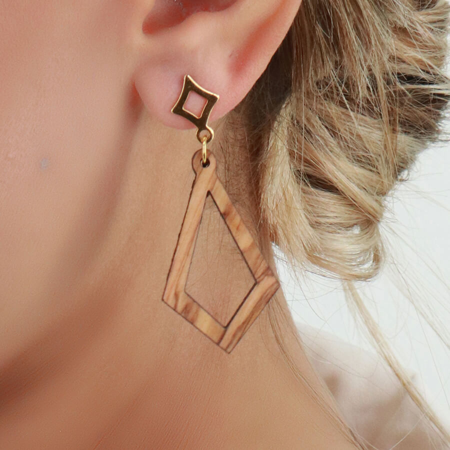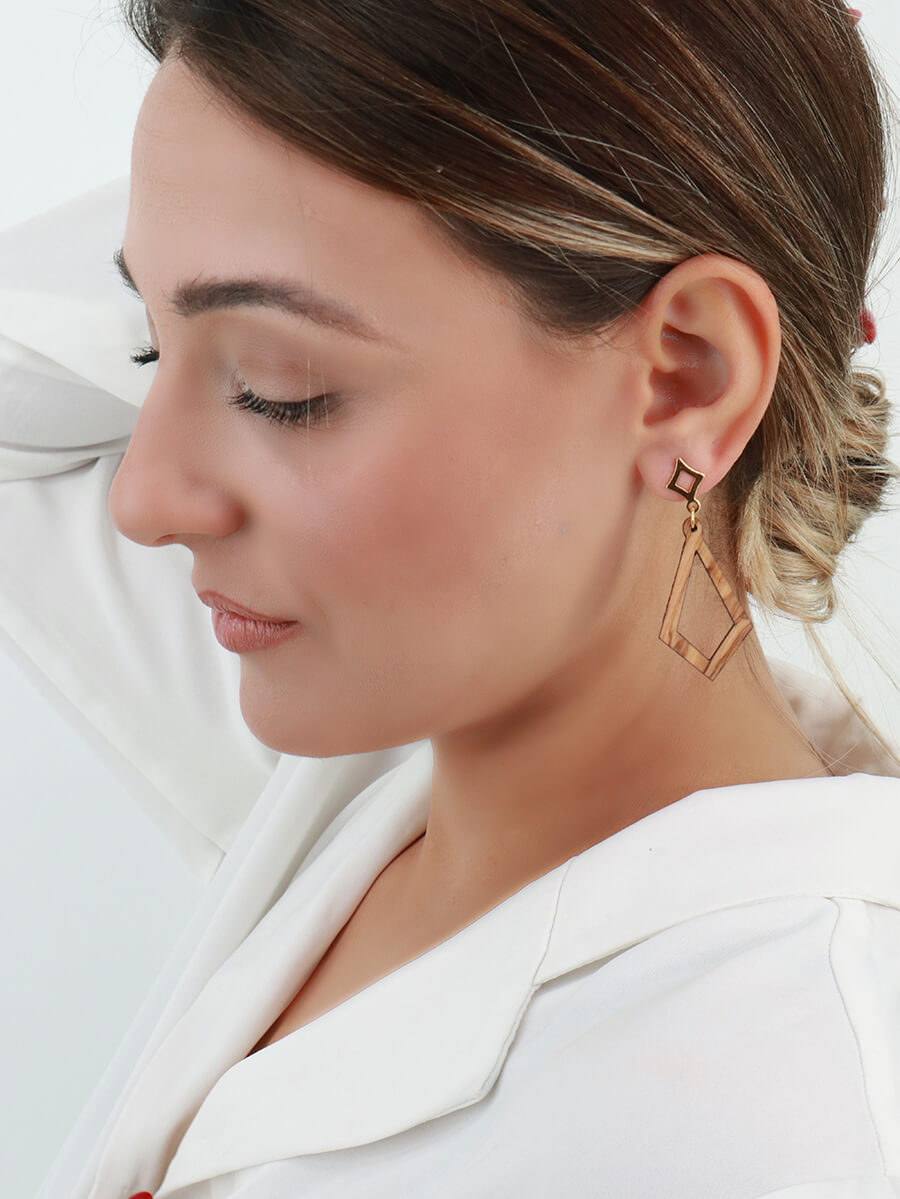 Γεωμετρικά σκουλαρίκια από ξύλο ελιάς Ασσύμετρος Ρόμβος