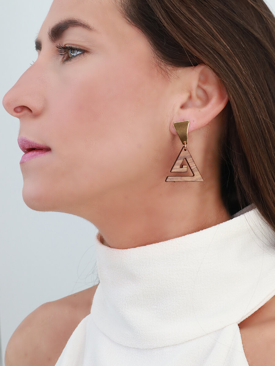 Γεωμετρικά σκουλαρίκια από ξύλο ελιάς Δέλτα