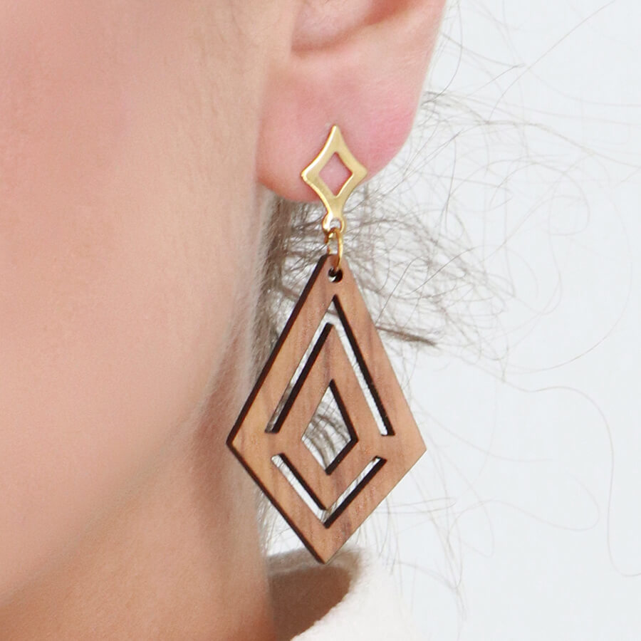 Γεωμετρικά σκουλαρίκια από ξύλο ελιάς Ένθετος Ρόμβος