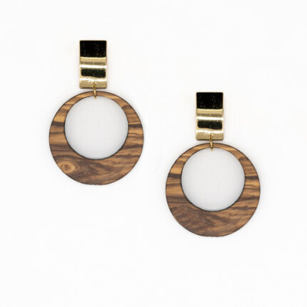 Χειροποίητα σκουλαρίκια από ελαιόξυλο με μοτίβο φύλλο. Συνδυάζονται με ένα ένθετο μεταλλικό φύλο από ανοξείδωτο ατσάλι σε χρυσό κι ασημί χρώμα. Εμπνευσμένα από τη φύση θα δώσουν αέρα ανανέωσης στο στυλ και την εμφάνισή σου.