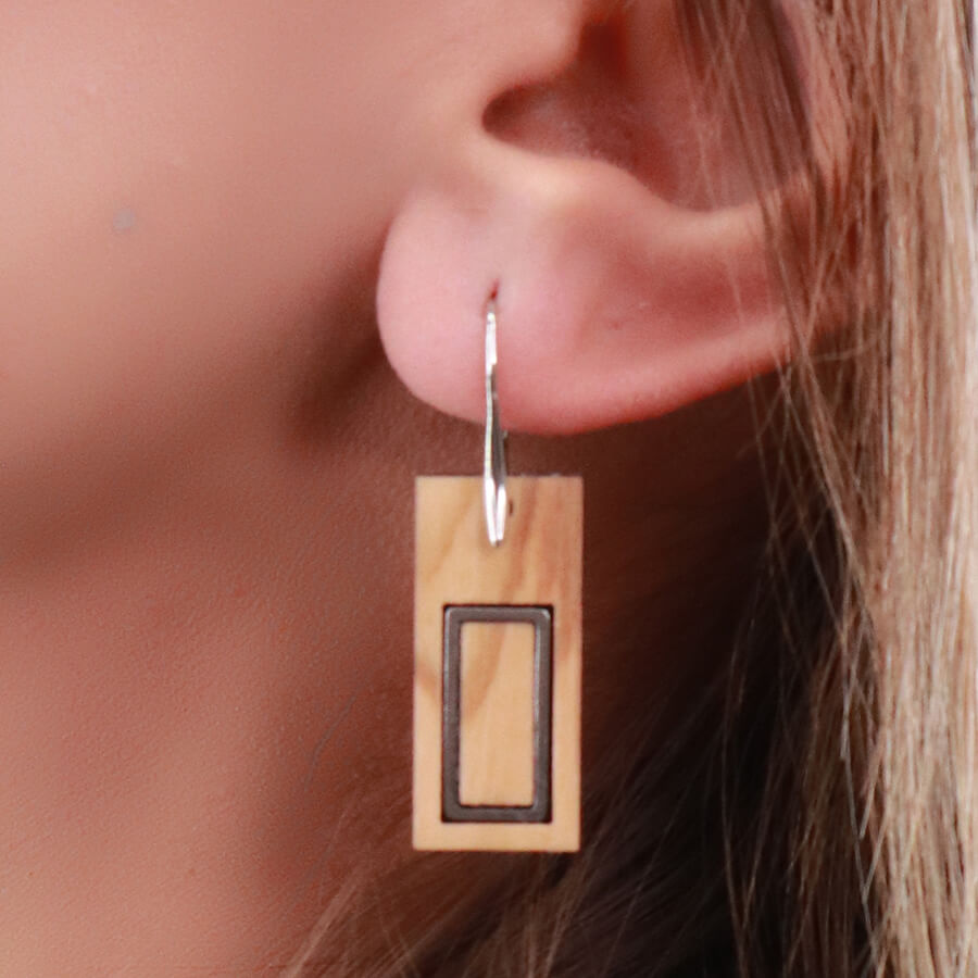 Γεωμετρικά σκουλαρίκια από ξύλο ελιάς Ορθογώνιο 1