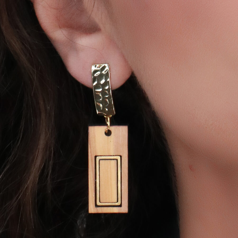 Γεωμετρικά σκουλαρίκια από ξύλο ελιάς Ορθογώνιο 2