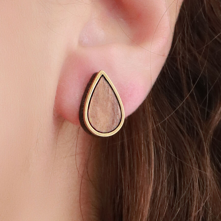 Chic σκουλαρίκια από ξύλο ελιάς Σταγόνα Stud