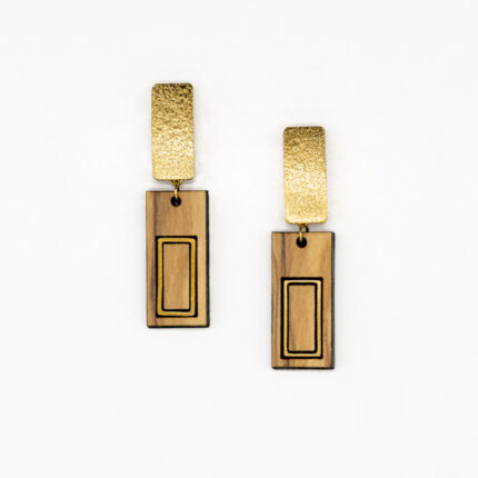 Γεωμετρικά σκουλαρίκια από ξύλο ελιάς Τετράγωνό 45o Κενό